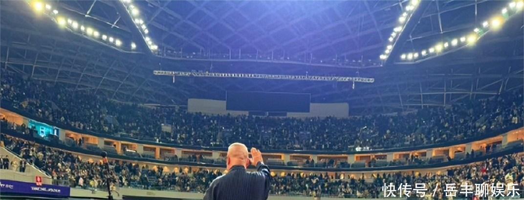 看来喜欢老郭的人真不少。有张照片里,老郭背对着镜头,正面向观众挥手,眼前全是人,场面相当震撼。场馆十分宽敞,两侧和中间区域都挤满了人。后排观众可能都很难看清他,可即便这样,场馆依旧满座。